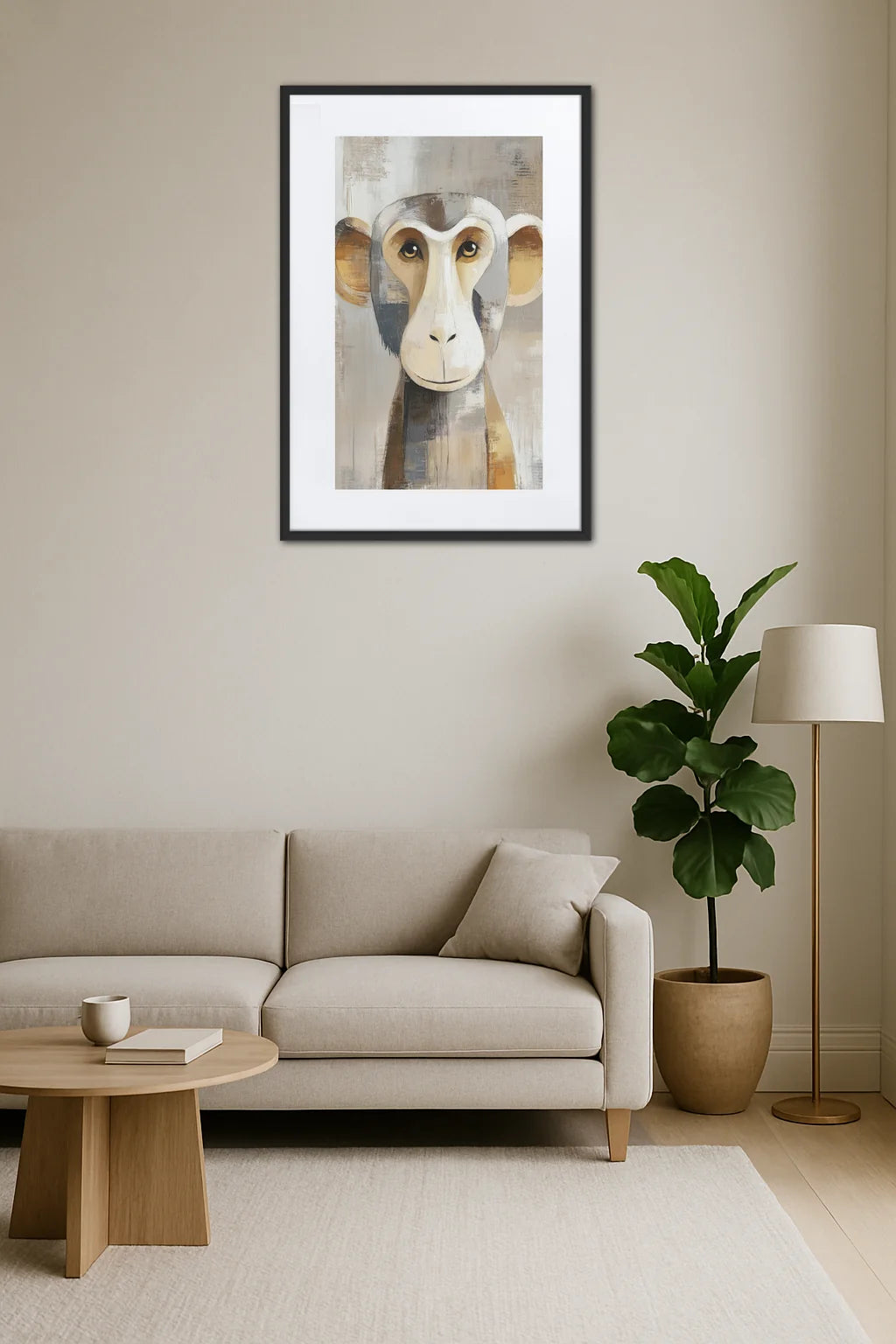 - Équilibre visuel et émotionnel : L’harmonie des couleurs naturelles caresse l’œil avec délicatesse, invitant à une sensation de calme profond. Cette douceur chromatique évoque une paix intérieure, un refuge dans le tumulte du quotidien. La présence du singe devient alors un compagnon silencieux, un souffle apaisant dans l’espace.