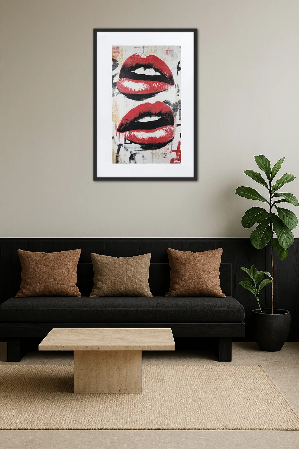- Impact visuel intense : Les lèvres rouges vibrantes captivent instantanément le regard en apportant une touche de passion et de mystère à votre intérieur. Leur présence audacieuse stimule l’imagination et invite à la réflexion, créant une atmosphère à la fois électrique et intime.