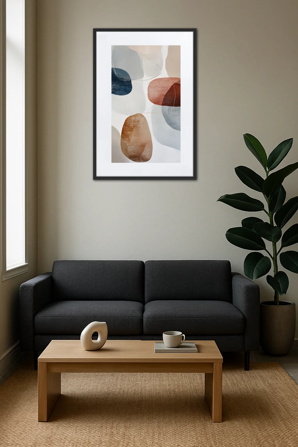 Cette œuvre incarne une véritable ode à la simplicité réinventée, où des formes arrondies se croisent et s’entrelacent dans un dialogue silencieux entre matière et espace. Elle évoque la nature dans ses lignes les plus pures, tout en se jouant des volumes et des profondeurs pour susciter un sentiment d’apaisement et de mouvement intérieur. Le choix des teintes, oscillant entre nuances terreuses et éclats plus profonds, confère à la toile une présence à la fois chaleureuse et mystérieuse. Ce tableau moderne XXL se présente comme un miroir de nos émotions, mêlant une douceur enveloppante à une énergie contenue qui stimule la réflexion. C’est une invitation à ralentir, à s’immerger dans un univers où chaque élément trouve sa place sans jamais envahir l’autre. Plus qu’une simple décoration, il raconte une histoire de coexistence entre le tangible et l’éthéré, entre la matière brute et les lignes délicates, faisant de chaque regard une expérience renouvelée. L’œuvre dialogue avec l’espace qui l’accueille, modifiant la perception du lieu par son élégance et sa force discrète, tout en offrant une respiration artistique et une connexion intime avec le spectateur.