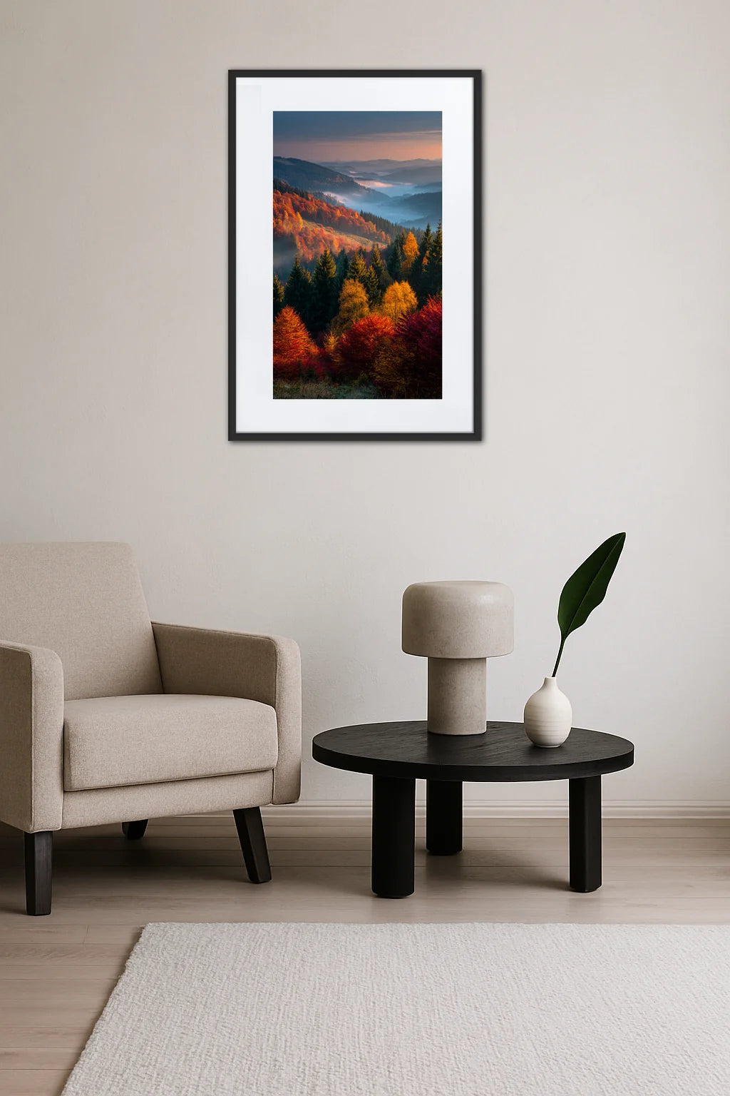 L'histoire derrière ce Tableau Montagne Automne - Harmonie des feuillages et brumes matinales