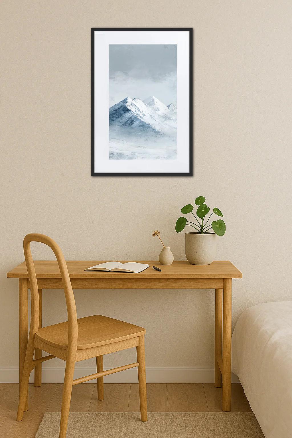 - Harmonie des contrastes : Les blancs éclatants des neiges rencontrent les ombres grises profondes, créant un jeu visuel captivant. Cette dualité évoque la force tranquille et la fragilité de la nature, suscitant une émotion douce et méditative.