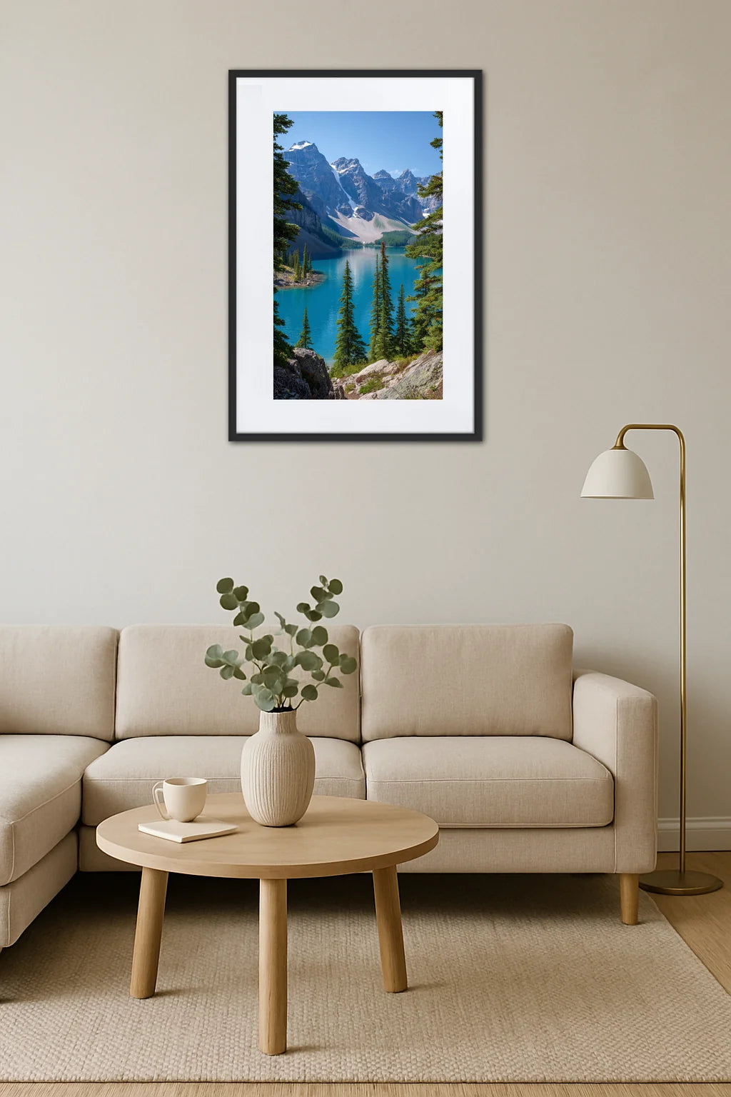 - Une eau turquoise éclatante : La teinte lumineuse et cristalline du lac attire le regard, offrant une pause visuelle délicate et apaisante. Cette nuance invite à la rêverie, à la douceur d’un moment suspendu, où le calme intérieur s’installe naturellement. Le spectateur ressent cette fraîcheur essentielle, presque vivifiante.