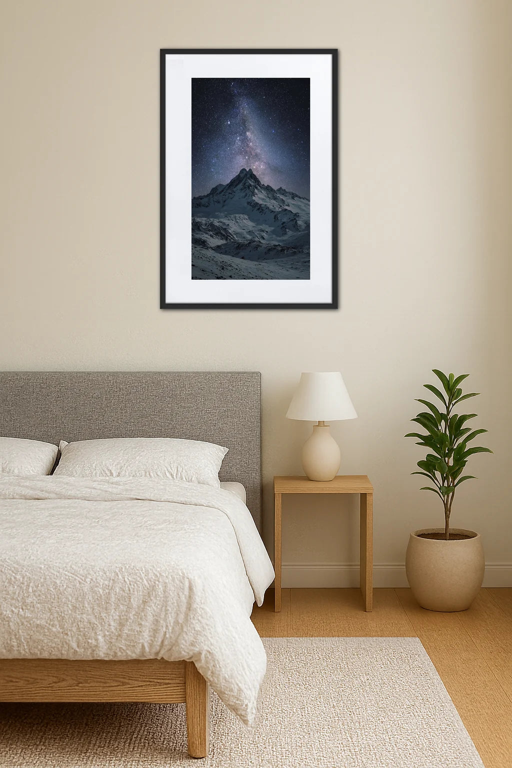 - Émerveillement cosmique : Le scintillement des étoiles illumine la composition d’une magie subtile, éveillant un sentiment d’émerveillement face à l’infini. Cette lumière céleste transcende l’image, insufflant une énergie douce et inspirante au cœur de l’espace qu’elle habite.
