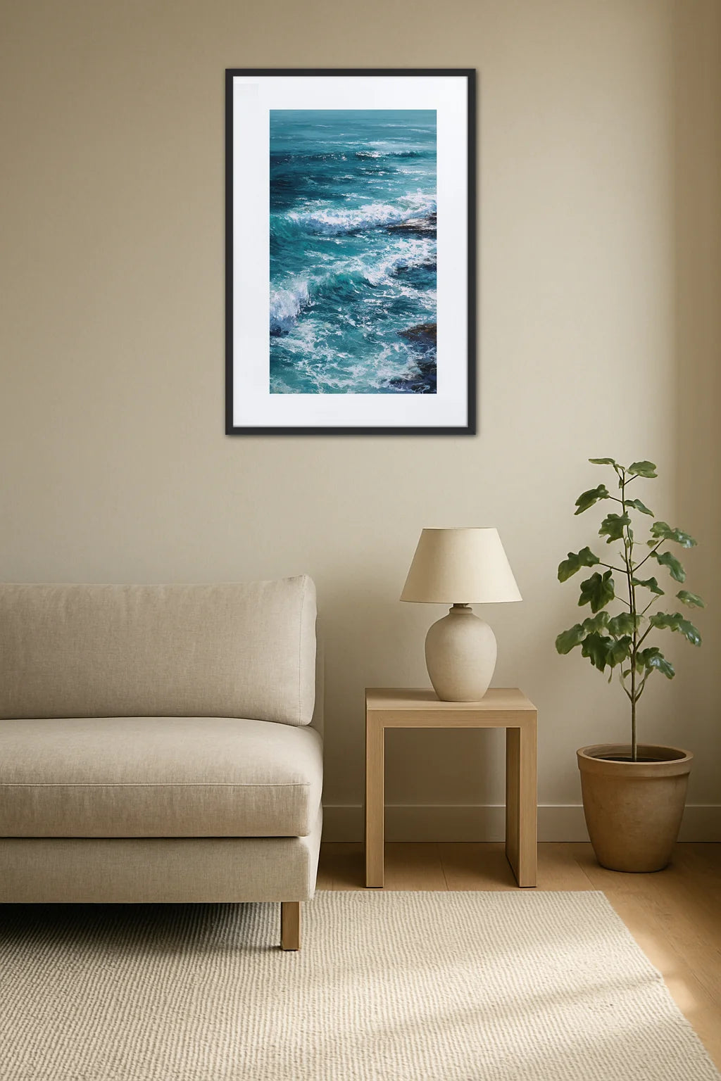 - Mouvement et énergie : Le dynamisme des vagues évoque la force et la liberté de la mer en perpétuel changement. Cette vibration visuelle se traduit par une émotion intense, une invitation à se laisser porter par le flux du moment présent.