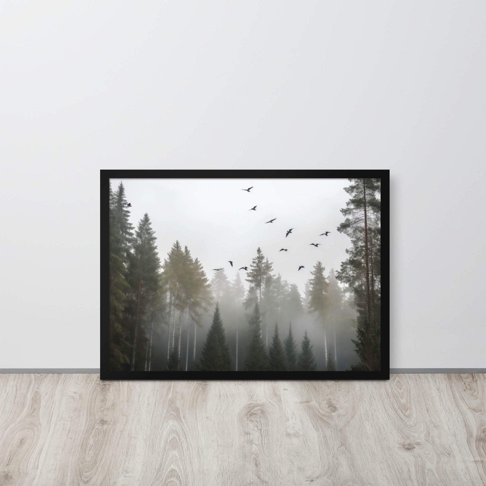 Le tableau scandinave brumeux évoque l'atmosphère paisible et mystérieuse d'une forêt dans la brume. Avec des tons doux et délicats, ce tableau apporte une touche de sérénité à votre décoration intérieure.