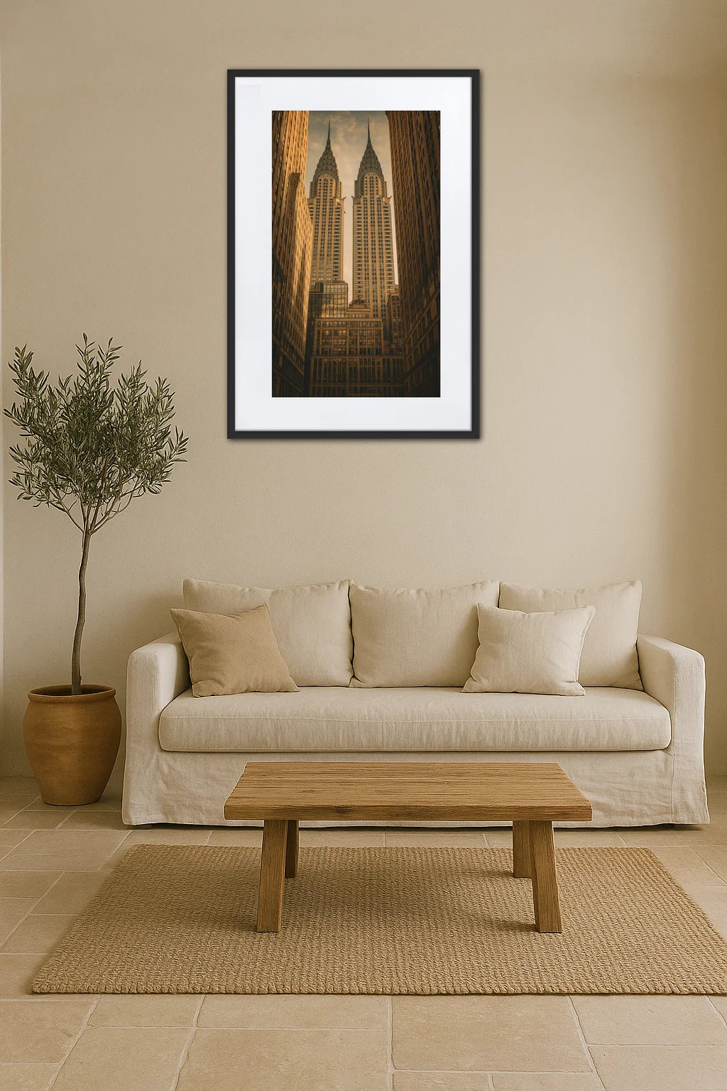 L'histoire derrière ce Tableau New York Deco - majesté urbaine et lumière dorée