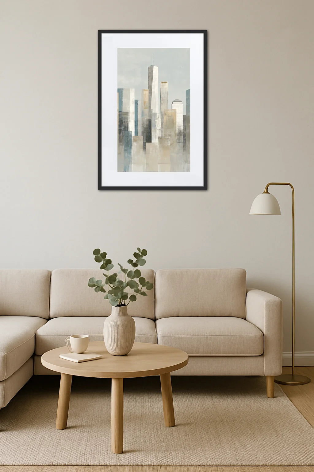 - Palette douce et raffinée : les nuances sobres créent une atmosphère enveloppante, éveillant un sentiment de calme et de profondeur. Elles rappellent la lumière matinale qui caresse la ville, instaurant un lien intime avec l’œuvre.