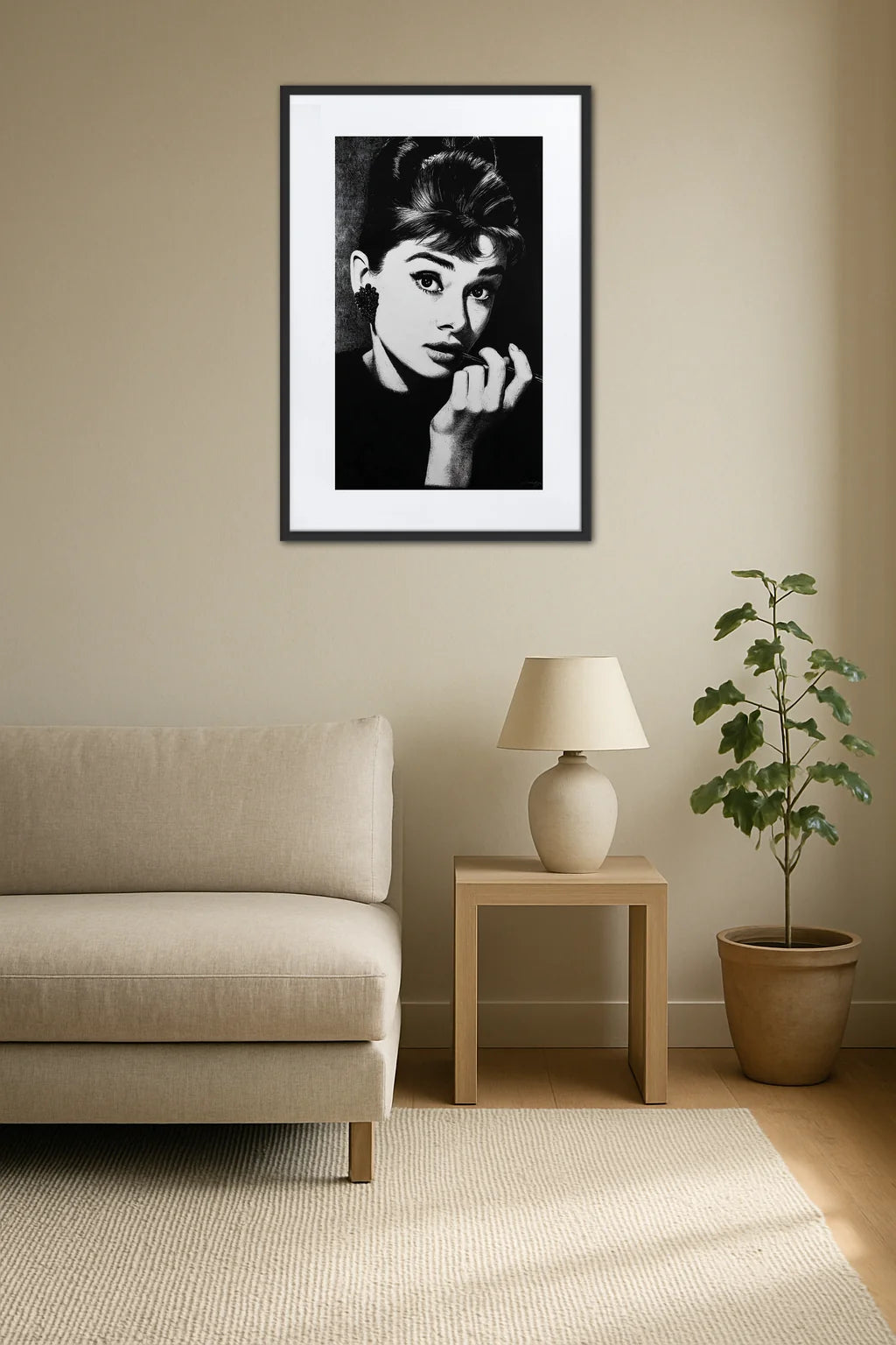 Accueillez cette œuvre dans votre intérieur et laissez-la dialoguer avec vos émotions, tissant un lien unique et vibrant entre le regard d’Audrey Hepburn et votre propre sensibilité.