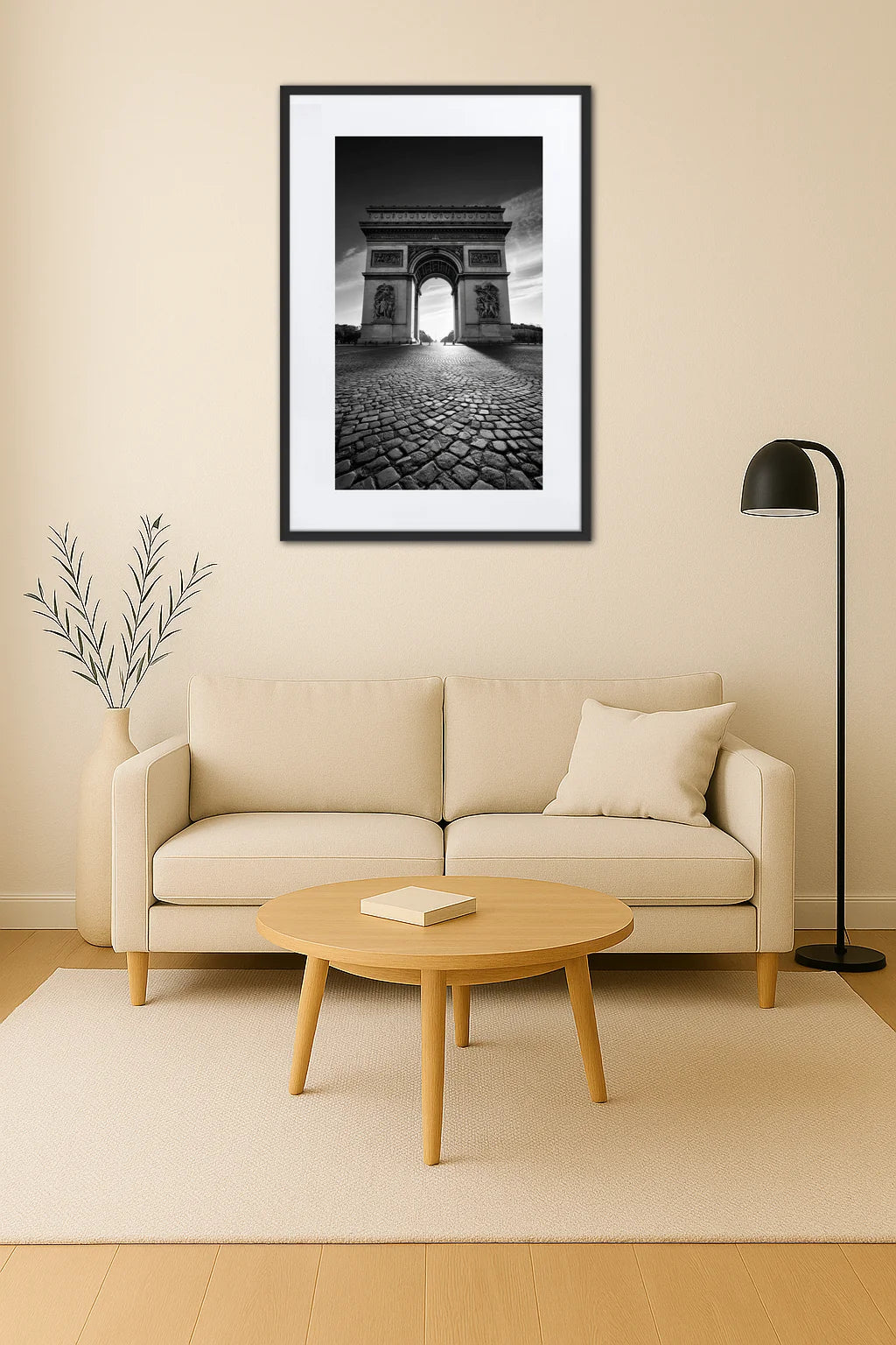 - Profondeur visuelle : L'agencement des ombres et des lumières crée un sentiment d'immersion, comme si l'on pouvait franchir le seuil de l'Arc de Triomphe. Cette sensation d'ouverture invite à une exploration intérieure, éveillant curiosité et rêverie.