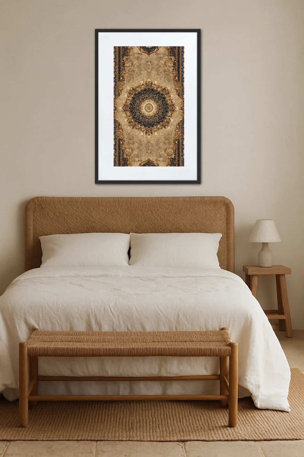 L'histoire derrière ce Tableau Oriental Beige - Harmonie des motifs et lumière dorée