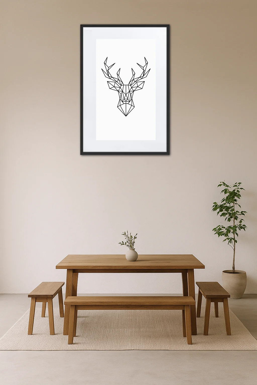 Ce tableau origami scandinave incarne la rencontre délicate entre tradition et modernité, où la simplicité s’élève en un geste artistique profondément signifiant. À travers l’épure de ses formes anguleuses, le cerf se révèle comme un symbole puissant de la nature nordique, un gardien silencieux des forêts immaculées. La finesse du tracé, mêlée à la géométrie rigoureuse, évoque une précision presque méditative, rappelant l’art ancestral du pliage du papier qui capture l’essence même de la matière. Ce minimalisme de l’image se déploie dans un espace blanc immaculé, laissant respirer chaque ligne et chaque contour, comme une respiration apaisante dans un intérieur contemporain. L’œuvre dialogue subtilement avec les influences scandinaves, où la lumière, l’espace et l’équilibre sont des valeurs essentielles. Plus qu’un simple décor, ce tableau devient une invitation à l’introspection, une porte ouverte vers un univers où la nature et l’art se fondent en une symbiose délicate. Son allure sobre mais pleine de caractère incarne la promesse d’un intérieur qui respire l’élégance et la sérénité, mêlant douceur et force dans un même souffle.