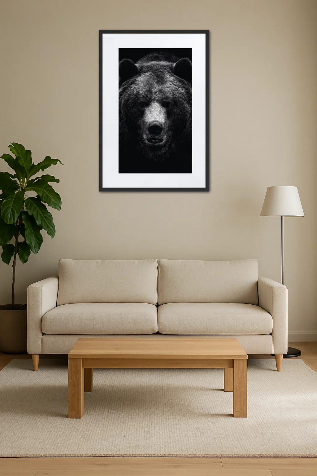 - Expression intense : Le regard de l’ours, à la fois calme et pénétrant, installe une connexion immédiate avec le spectateur. Cette intensité suscite une émotion vibrante, à la fois apaisante et stimulante, qui résonne avec l’âme.
