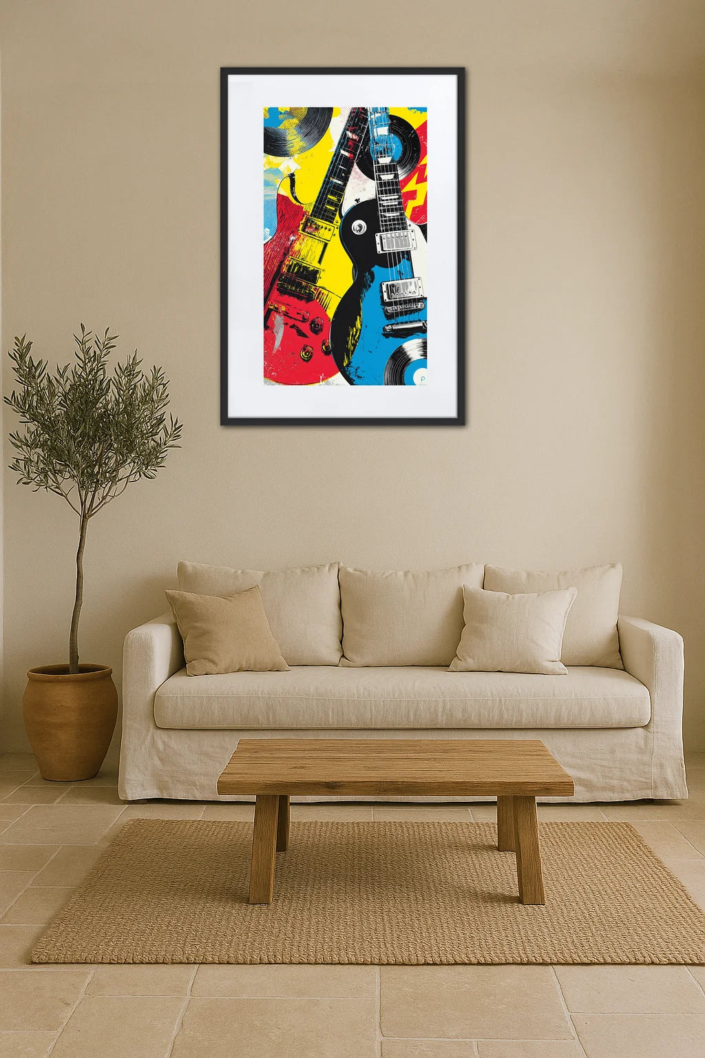 - Une explosion d’énergie : La composition illustre la vibration et la fougue du rock dans toute sa splendeur. Elle fait vibrer la pièce d’une intensité communicative, insufflant une sensation de liberté et de puissance inspirante.