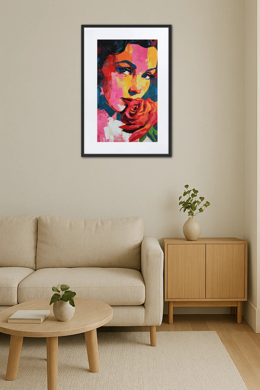 Ce tableau pop art rose incarne bien plus qu’une simple représentation visuelle. Il évoque un dialogue intense entre tradition et modernité, où la figure féminine, magnifiée par des touches éclatantes, devient le symbole d’une époque où les émotions se libèrent sans retenue. La rose, emblème classique de la beauté et du mystère, est revisitée avec audace, englobée dans une palette vibrante qui transcende les conventions. Chaque coup de pinceau, à la fois précis et chaotique, raconte une histoire d’émancipation et d’expression. Ce visage, à la fois doux et incisif, semble fixer le spectateur avec une intensité presque hypnotique, offrant un regard qui invite à la contemplation et à la réflexion. L’œuvre puise ses racines dans l’univers du pop art, mouvement qui a su détourner l’iconographie populaire pour en révéler toute la puissance narrative et émotionnelle. Ici, le jeu des formes et des couleurs s’entrelace pour créer une harmonie surprenante, où la force de l’individu se mêle à la poésie du symbolisme. Plus qu’une simple décoration, ce tableau devient un manifeste visuel, un hommage vibrant à la créativité et à la singularité de chacun.