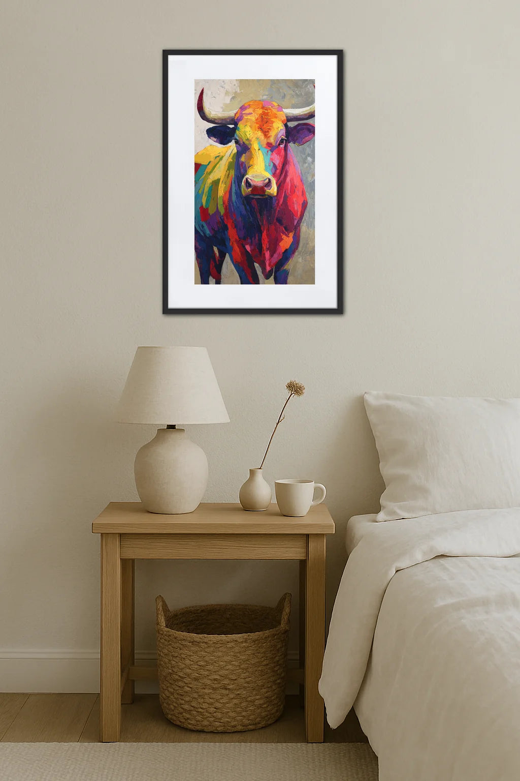 L'histoire derrière ce Tableau Pop Art Taureau - puissance colorée et regard captivant