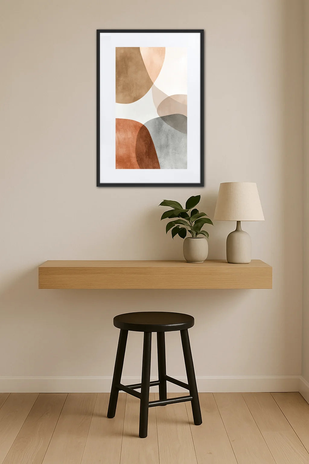Cette œuvre s'inscrit dans la tradition épurée du design scandinave, où la simplicité devient langage et chaque forme raconte une histoire. Les volumes arrondis et les teintes terreuses dialoguent en silence, évoquant les paysages nordiques baignés de lumière tamisée. Le tableau incarne un équilibre subtil entre la nature et l'abstraction, où le regard se perd dans la douceur des formes superposées. Il invite à un voyage intérieur, une pause méditative au cœur du quotidien, où chaque nuance évoque la chaleur d’un foyer et la quiétude d’un refuge. Le choix des couleurs, inspiré par la terre, le bois et la pierre, rappelle un lien fragile mais puissant avec les éléments, traversant le temps et les espaces. Cette pièce est une célébration de la lenteur et du calme, un appel à ressentir la beauté dans l’essentiel, à travers un art qui s’efface pour mieux habiter l’âme de la pièce. Elle est pensée pour dialoguer avec les intérieurs contemporains qui cherchent à conjuguer esthétique et émotion, offrant un cadre visuel qui apaise et stimule à la fois, comme une respiration profonde dans un monde en mouvement.