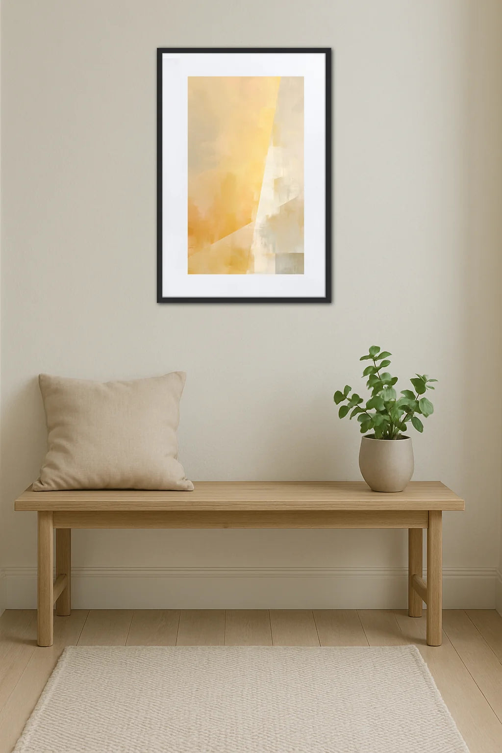 - Ambiance scandinave : Le minimalisme raffiné du tableau invite à la contemplation et à la simplicité. Cette esthétique sobre favorise un sentiment de calme intérieur, rappelant les espaces où la lumière et la nature cohabitent en harmonie.