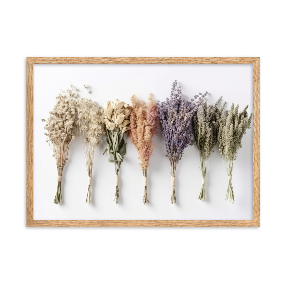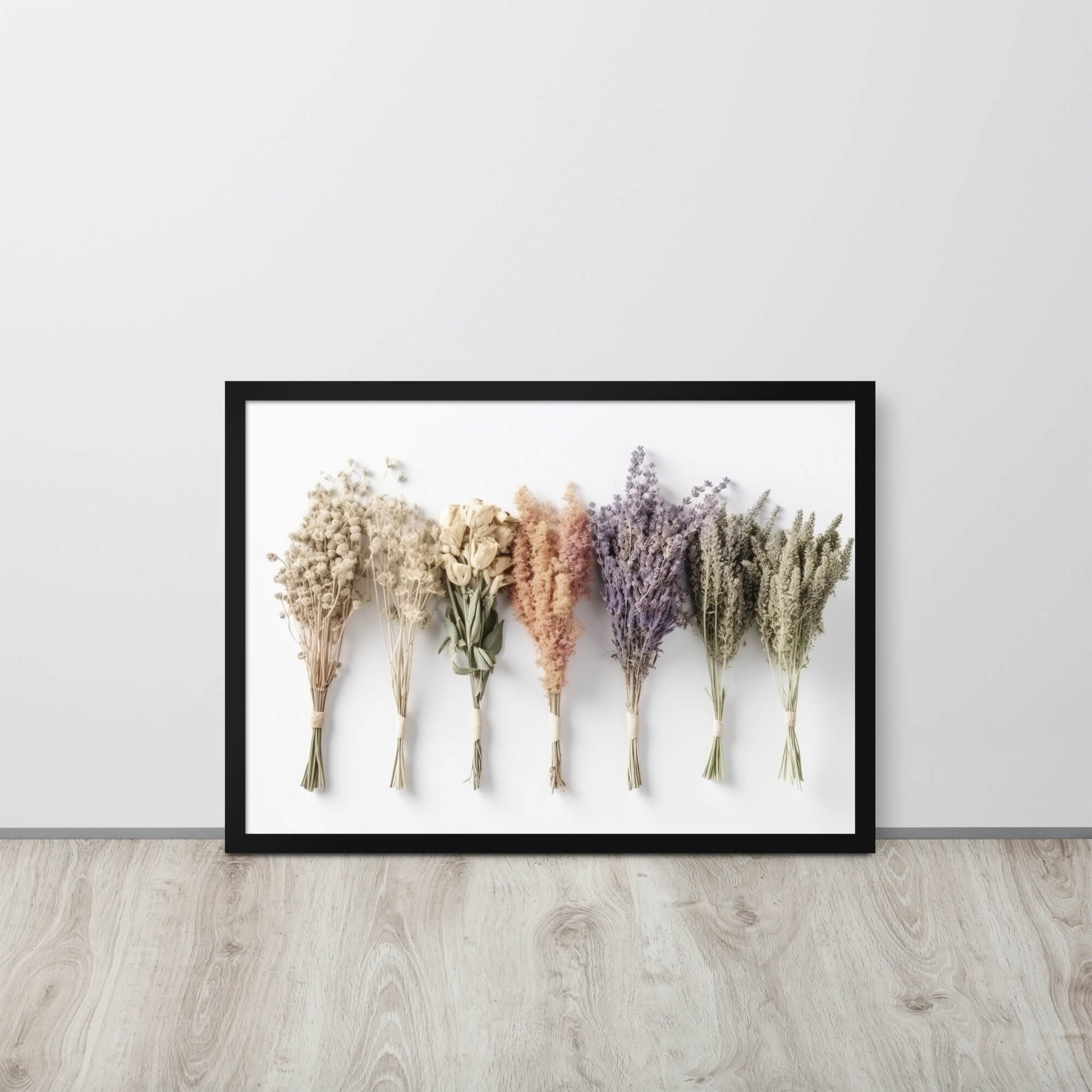 Le tableau scandinave sur le thème du bouquet d'herbes séchées est une belle représentation de la nature sauvage et de la simplicité. Les tons doux sont mélangés avec des touches de vert pour donner une ambiance naturelle et apaisante à la pièce.