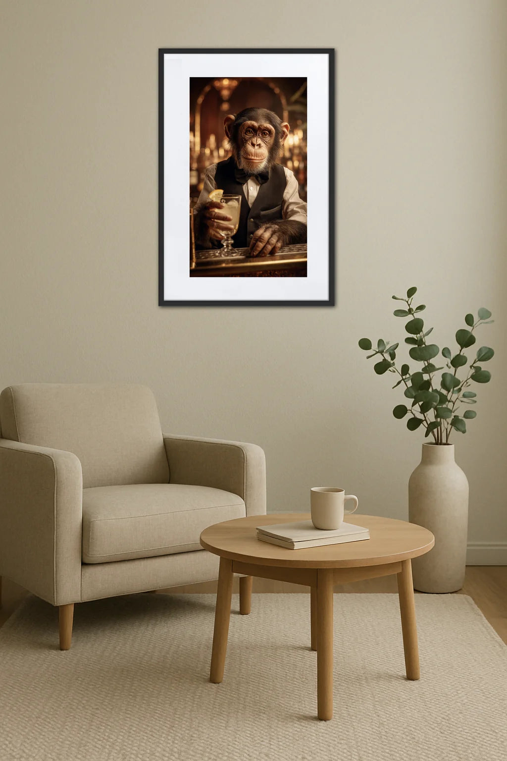 L'histoire derrière ce Tableau Singe Au Bar - Une scène d'élégance animalière et de mystère urbain