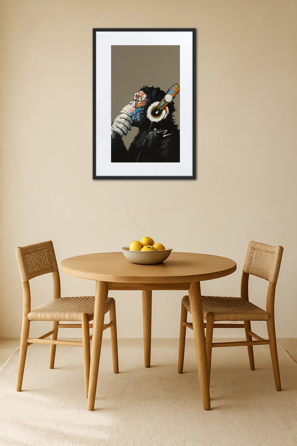 Pour prolonger cette immersion dans l’univers singulier des primates contemporains, découvrez comment l’humour et la couleur se mêlent dans le Tableau Singe Banane, une œuvre qui dialogue parfaitement avec ce portrait méditatif.