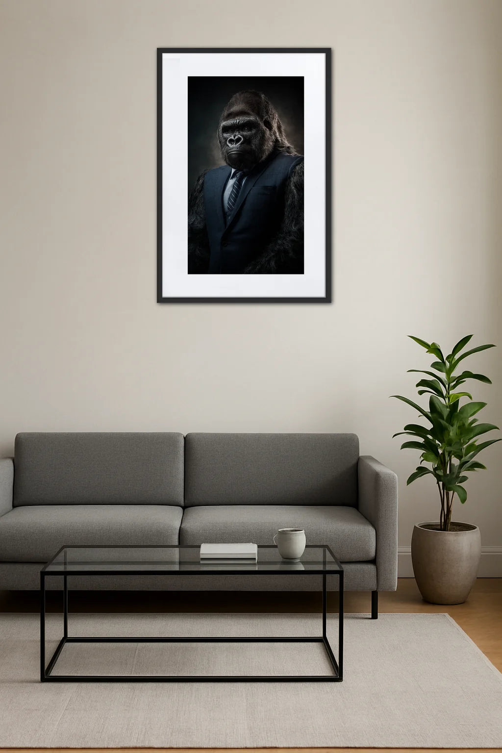 - Un contraste saisissant : Le gorille en costume crée un équilibre visuel entre la rudesse naturelle et la sophistication humaine, révélant une tension esthétique qui capte instantanément le regard. Cette rencontre entre deux mondes suscite une émotion profonde, mêlant surprise et admiration dans un même souffle.