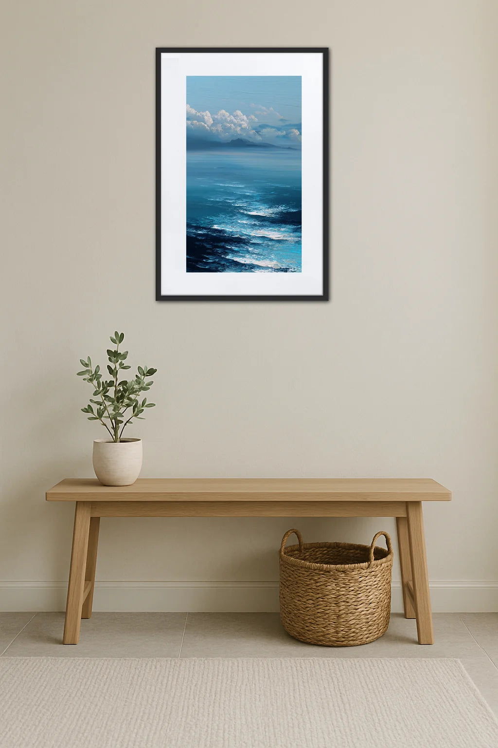 - Profondeur visuelle : Les nuances intenses de bleu et le jeu subtil entre ombre et lumière donnent vie à une mer tourmentée, invitant à une immersion immédiate. Cette profondeur transporte l'esprit vers un ailleurs poétique où l'imagination trouve son espace de liberté.